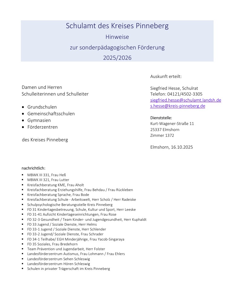 Sonderpädagogische Rundverfügung: Hinweise zur sonderpädagogischen Förderung 2025-2026